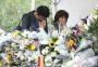 放火されたスタジオの近くには献花台が設けられ、京都アニメーションの世界中のファンや、