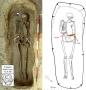 この骸骨は6〜8世紀のものと推定された。死亡時の年齢は40〜50歳とみられている。右腕は切断されており、手の代わりにナイフの付いた義手がつけられていた。