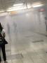 煙はホームだけでなく、階段下のコンコースにも広がっていました。