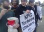 ケンタッキーフライドチキンはニワトリを虐待していると抗議するデモ隊の横でひたすらチキンを貪り食うナイスガイ