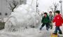 高さ1.8メートルの精巧な雪像が現れ、通行人の目を楽しませている。