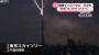 午後6時ごろに東京・江戸川区から、西の方角にある東京スカイツリーを撮影した映像では、高さ634メートルのスカイツリーの先端に向かって、稲妻が走っているのがわかる。