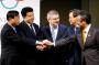 4者会談を終え、握手する(左から)李煕範・平昌五輪大会組織委員会会長、金日国・北朝鮮オリンピック委員会委員長、IOCのバッハ会長、韓国の都鍾煥・文化体育観光相ら=20日、ローザンヌ(ロイター)