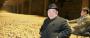 収穫されたジャガイモの山を前に、満面の笑みを見せる金正恩党委員長。