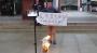 「南京大虐殺を忘れるな 日本の責任を追及する」。動画を見ると、郭容疑者は、東條英機元首相の名前が書かれた位牌のようなものを燃やしている前で、こんな内容が書かれた横断幕を掲げ、中国語でわめき始める。