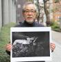 自身が昭和36年に福岡県で撮影した炭坑内の男性の写真パネルを手にする写真家の斎藤康一氏=東京都新宿区(奥原慎平撮影)